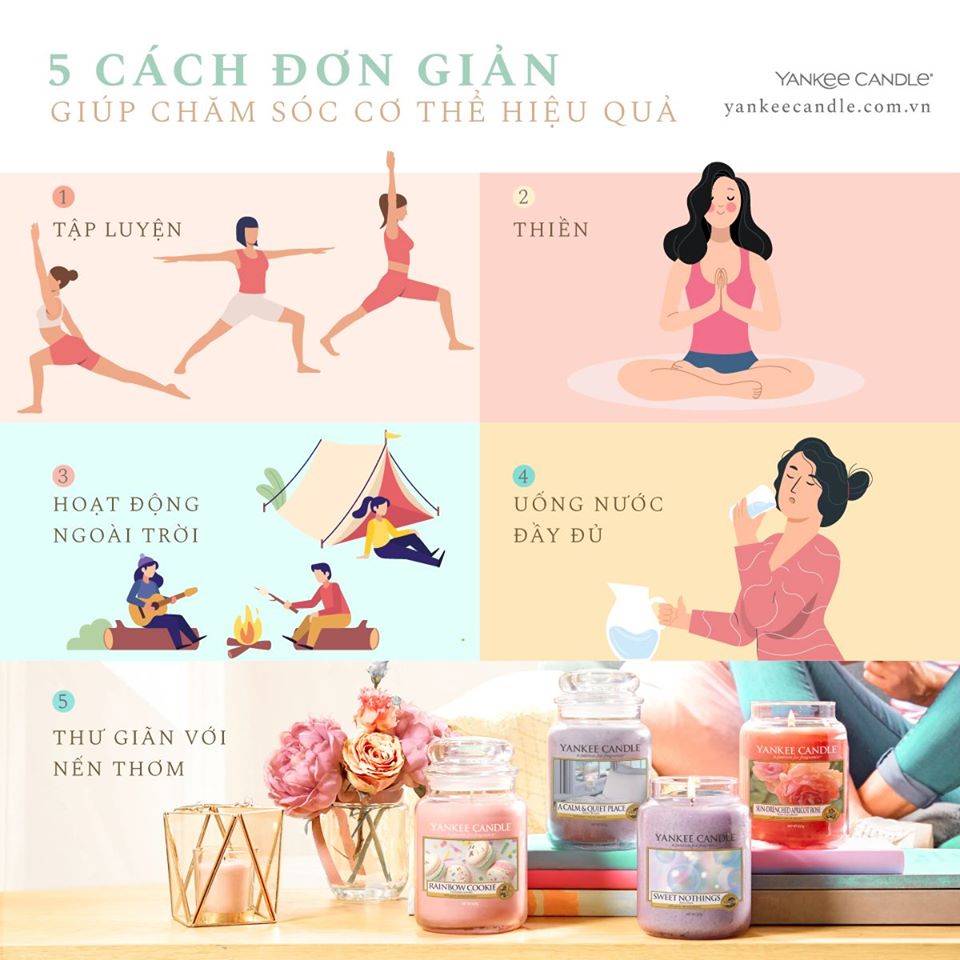 Mỗi tối trước khi đi ngủ hãy thắp lên ngọn nến thơm. Hương thơm dịu nhẹ sẽ giúp bạn xoá tan cảm giác bồn chồn, lo âu và căng thẳng. Tạo sự thoải mái cho bạn giấc ngủ ngon.
