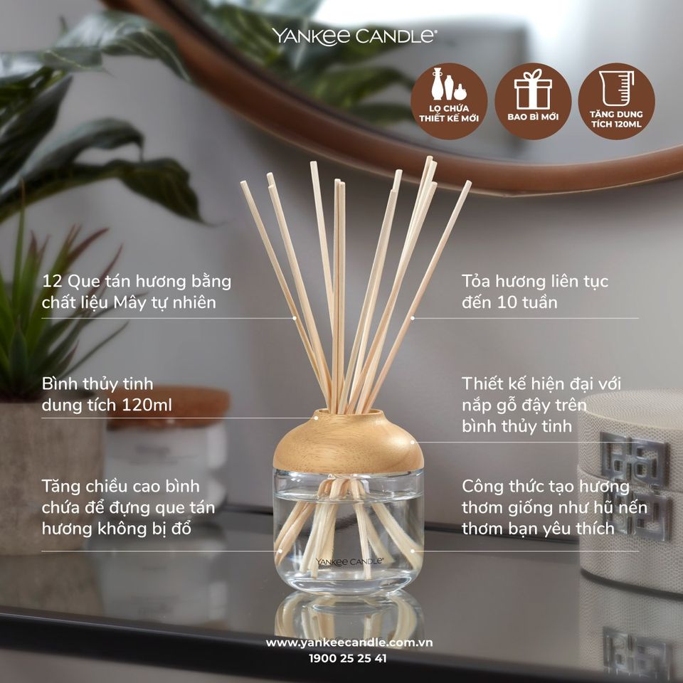 Sản phẩm làm thơm cho mọi không gian mà không cần dùng lửa. Tinh Dầu Tán Hương có hương thơm giống với các mùi nến của Yankee Candle và thời gian tỏa hương liên tục suốt 10 tuần.