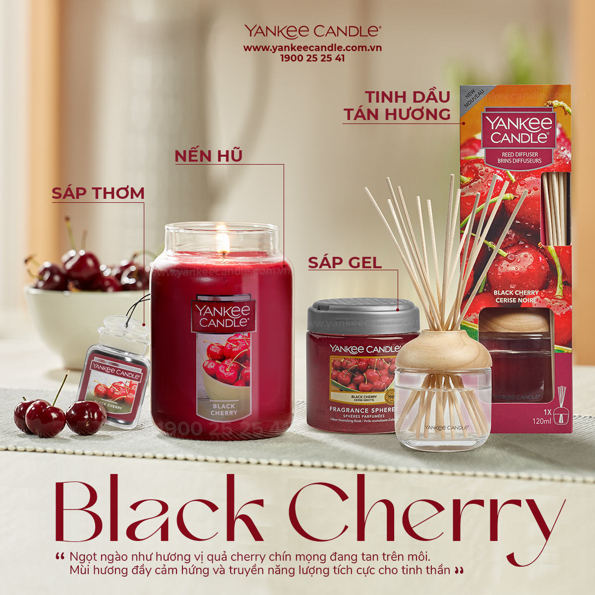 Những lúc cảm thấy tụt mood, chán chường bạn thường làm gì? Những lúc thế này hãy dành cho bản thân mình một chút thời gian, ngồi xuống thư giãn và nạp nhanh năng lượng cho tinh thần bằng sự ngọt ngào, tươi trẻ của hương thơm Black Cherry nha!