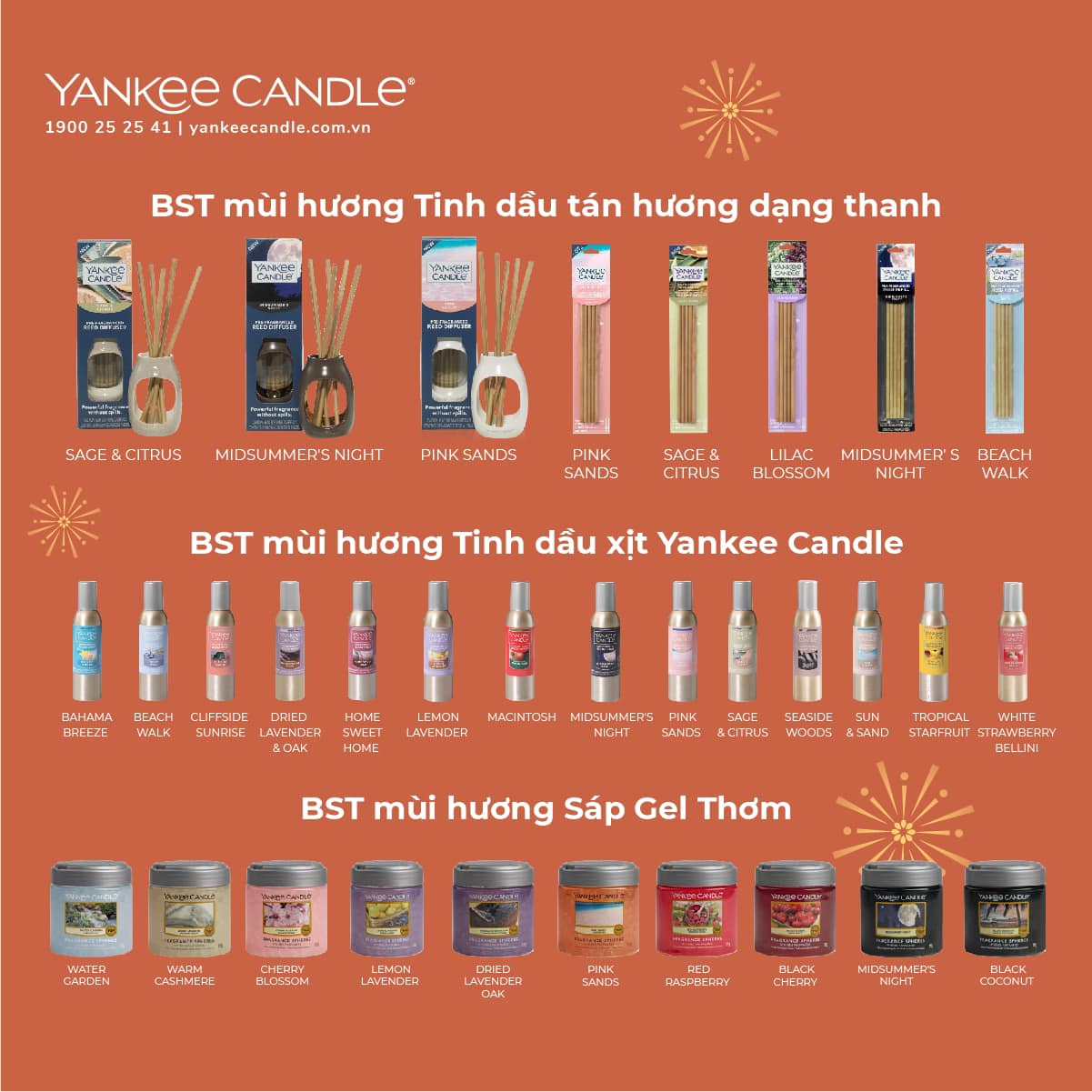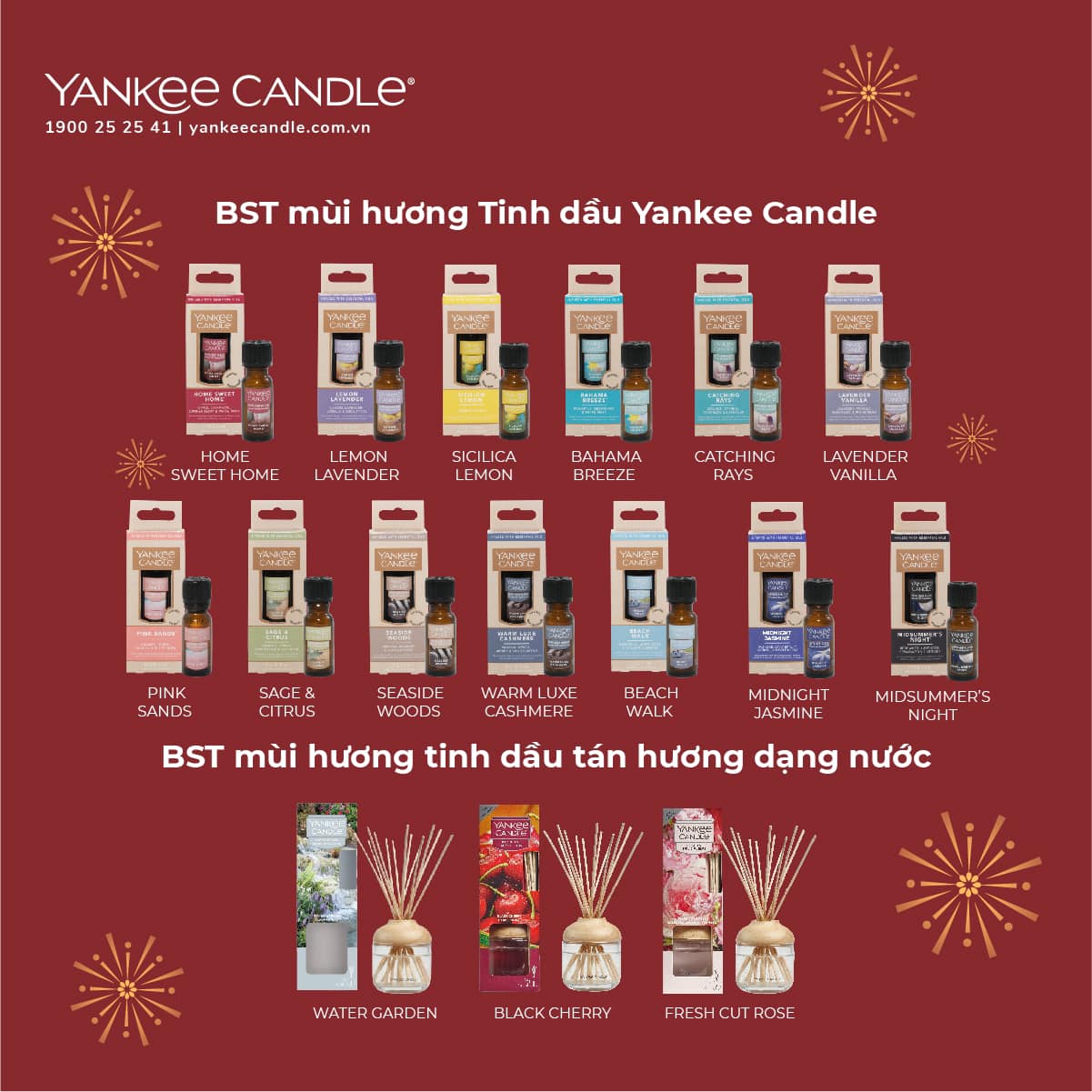 Tết năm nay hãy tận hưởng khoảnh khắc sum vầy hạnh phúc trong không gian tràn ngập hương thơm với BST tinh dầu Yankee giúp cho không gian trở nên thanh sạch, làm vơi đi căng thẳng và khiến bạn trở nên thư giãn vui vẻ hơn.
