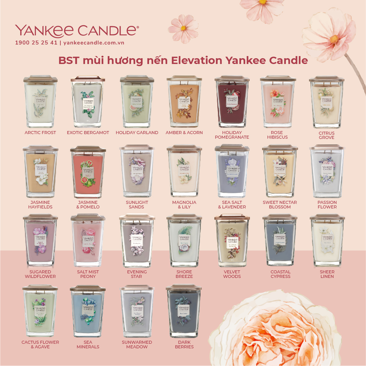 BST với 20 mùi hương. Đặt hàng tại website: www.yankeecandle.com.vn