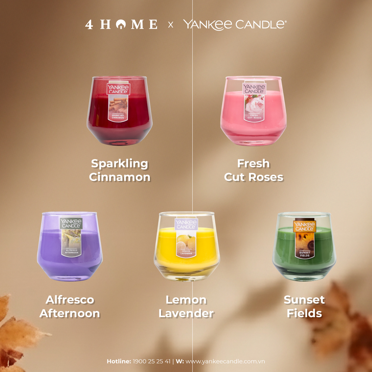 5 mùi hương đặc trưng: Sparkling Cinnamon ấm áp, Fresh Cut Roses ngọt ngào, Lemon Lavender tươi mát, Alfresco Afternoon thư giãn, Sunset Fields đầy cảm hứng.