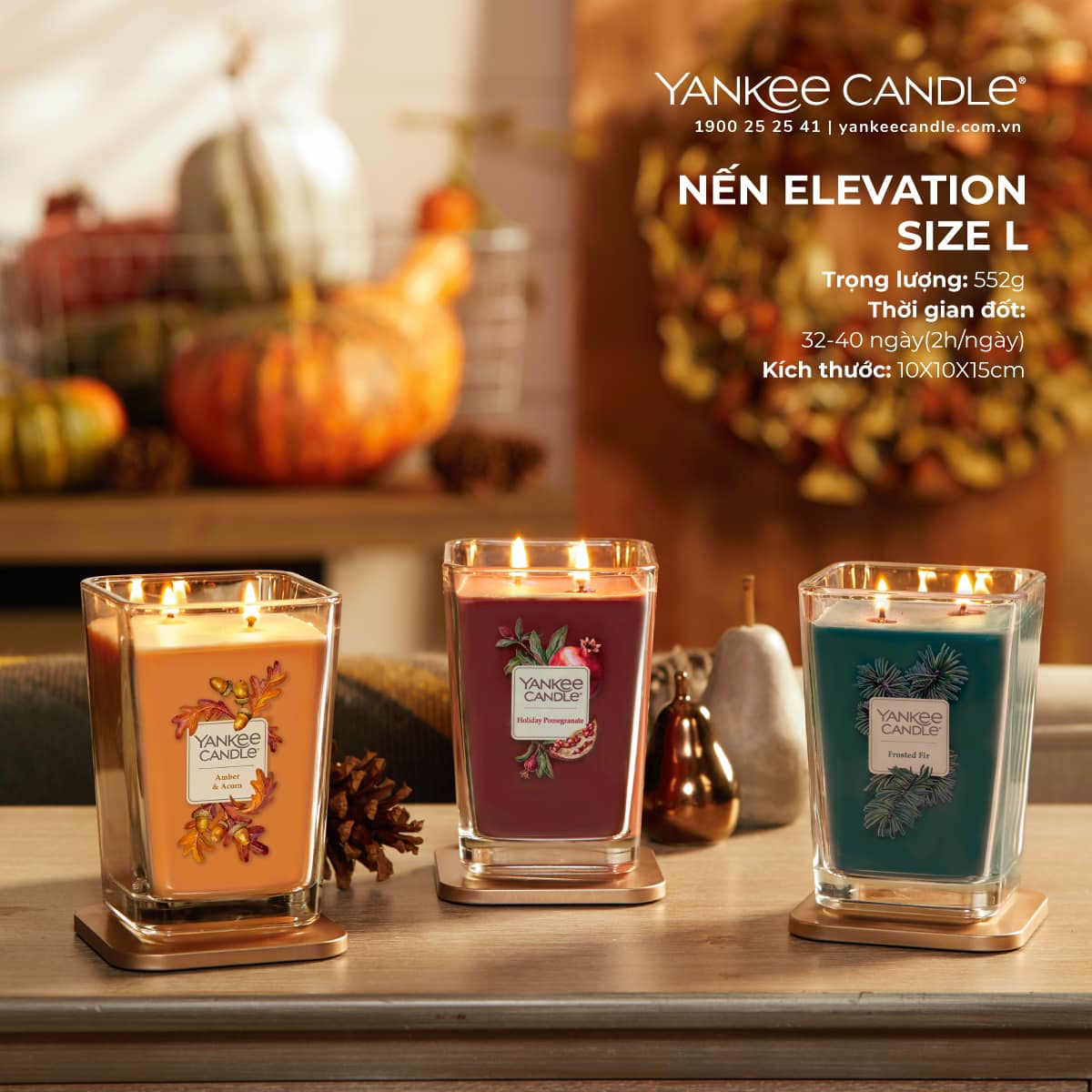 BST nến Elevation với hơn 20 mùi hương và 3 size nến phù hợp với nhu cầu sử dụng, diện tích phòng khác nhau.