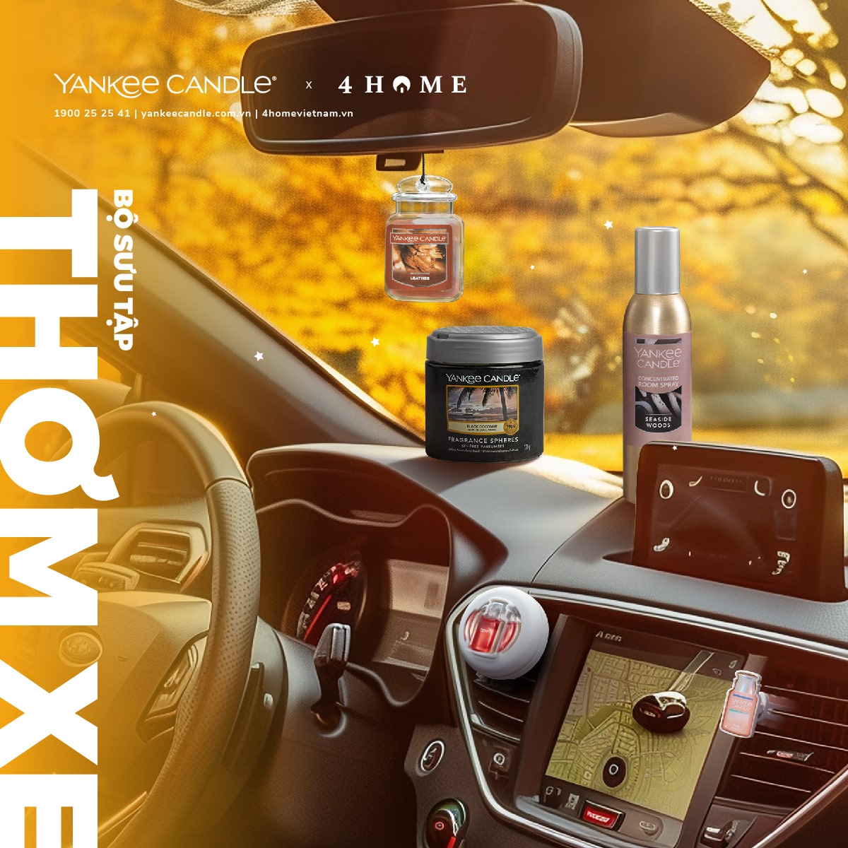 Với 6 dòng sản phẩm, BST thơm xe sẽ giúp hành trình mùa thu thêm phần dễ chịu. Mỗi chuyến đi đều trở thành một trải nghiệm thú vị với hương thơm đồng hành cùng bạn!