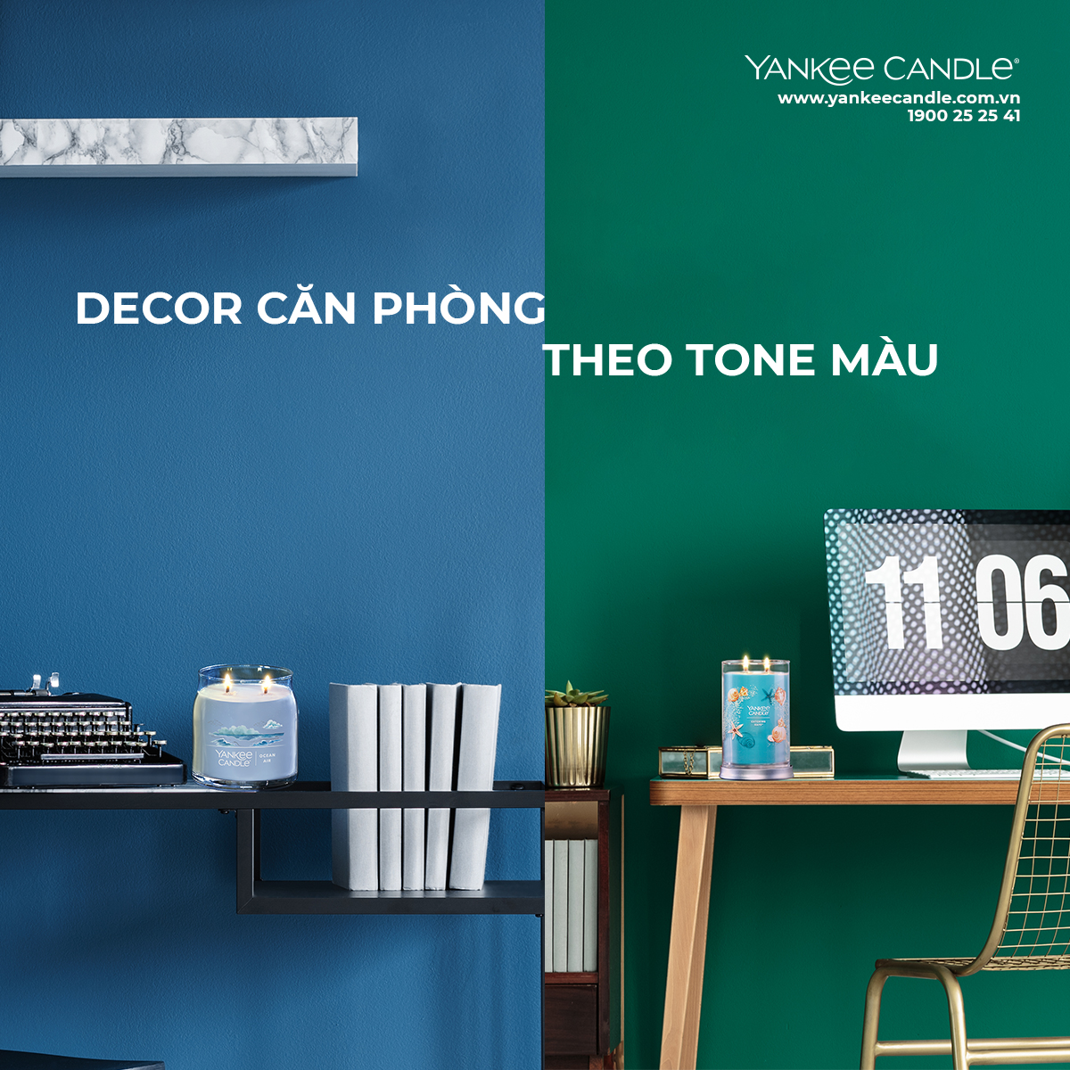 Những căn phòng có màu xanh biển, xanh lá thì hãy chọn ngay những lọ nến màu xanh da trời, xanh mòng két hoặc là xanh bạc hà bạn nha. Sắc xanh sẽ tạo nên một tổng thể hài hòa cho toàn bộ căn phòng. Mang tới cảm giác mát mẻ và vô cùng thanh lịch đó nha!