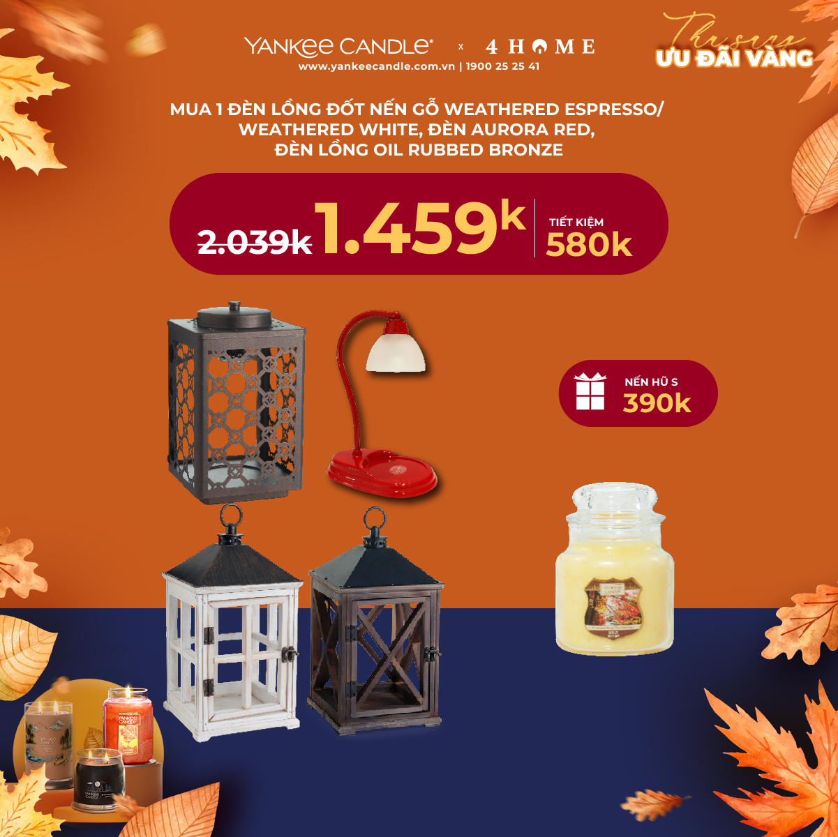 Mua 1 đèn Lồng Gỗ Đốt Nến Weathered Espresso/ Weathered White/ Aurora Red tặng 1 nến hũ S