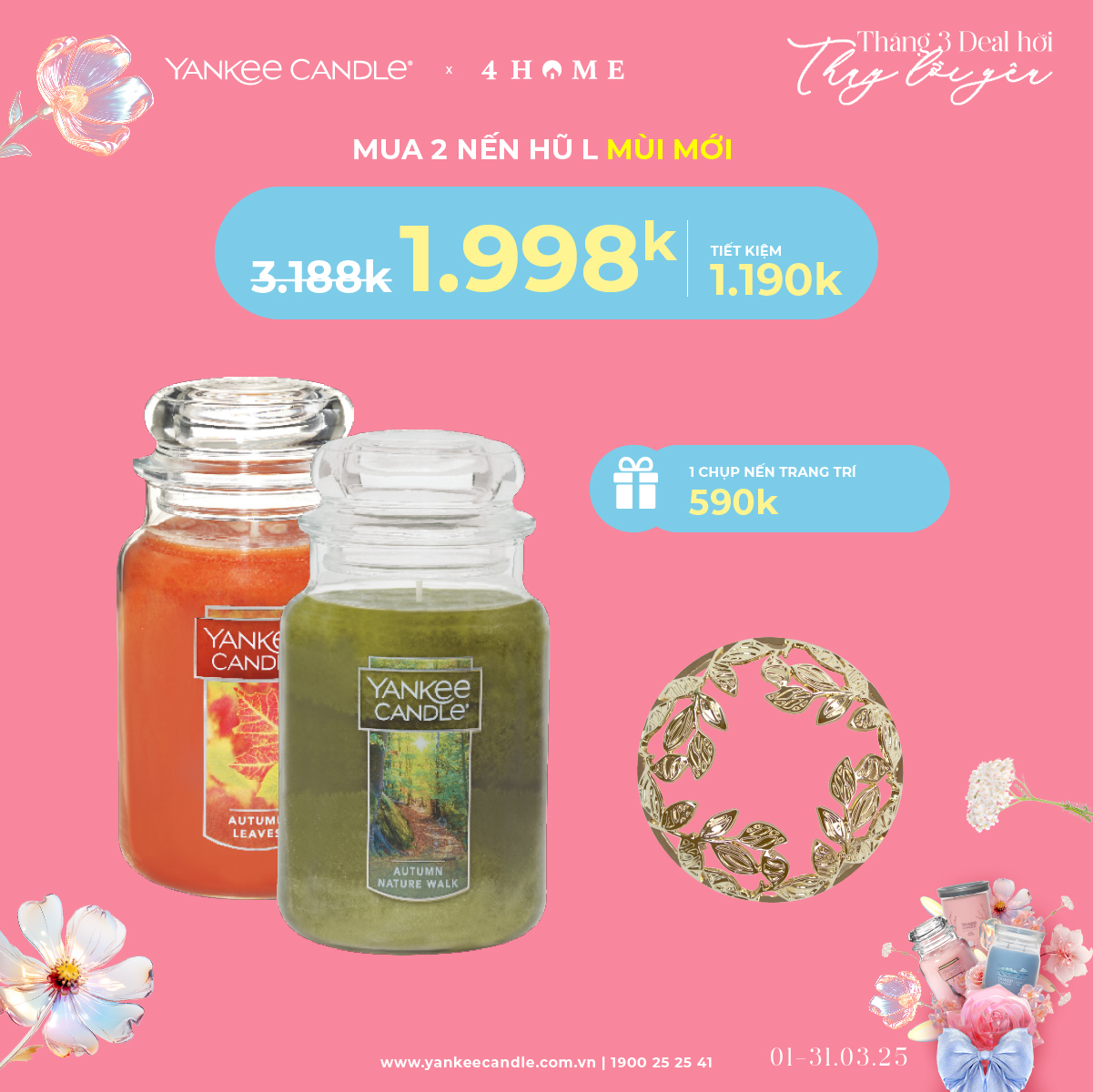 Chào tháng 3, tháng của yêu thương và tôn vinh phái đẹp! Hãy dành tặng bản thân và những người phụ nữ quan trọng những món quà thơm ngát từ Yankee Candle ưu đãi hấp dẫn: