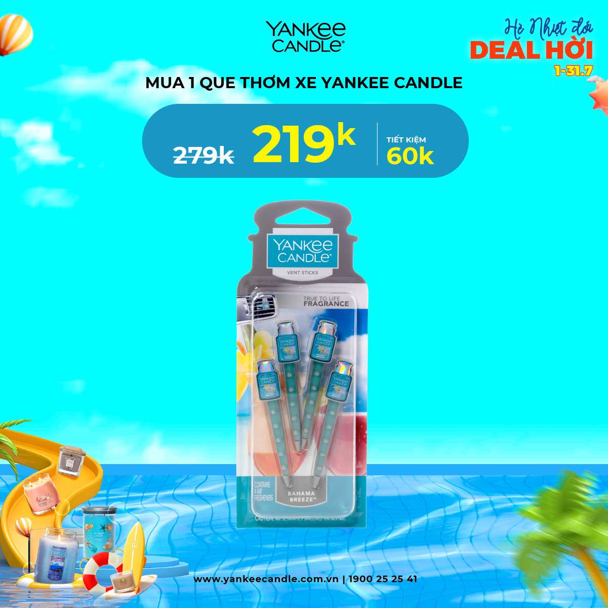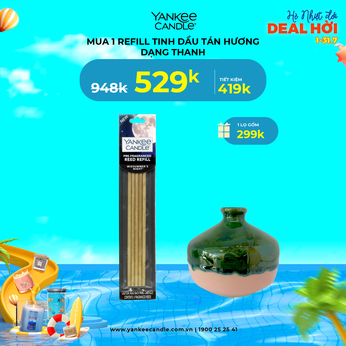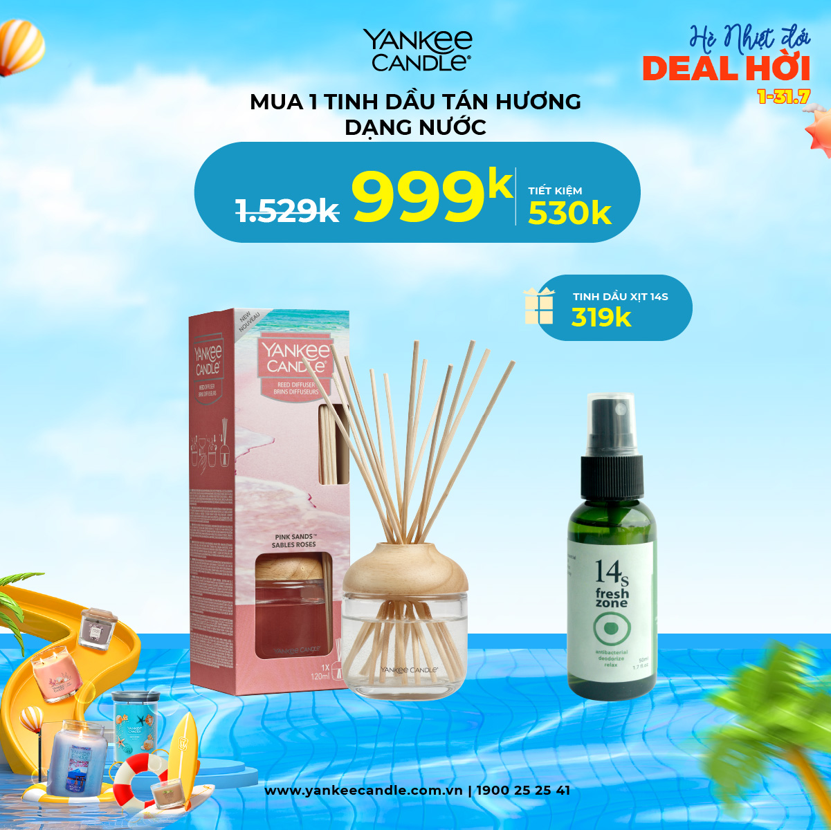 Tháng 7 này, Yankee mang tới cho bạn chương trình ưu đãi siêu chất! Loạt sản phẩm hương thơm với giá siêu hời đã sẵn sàng lên kệ. Cùng nhau thổi hương thơm tươi mát, sảng khoái vào căn phòng để mùa hè càng thêm sôi nổi bạn nha!