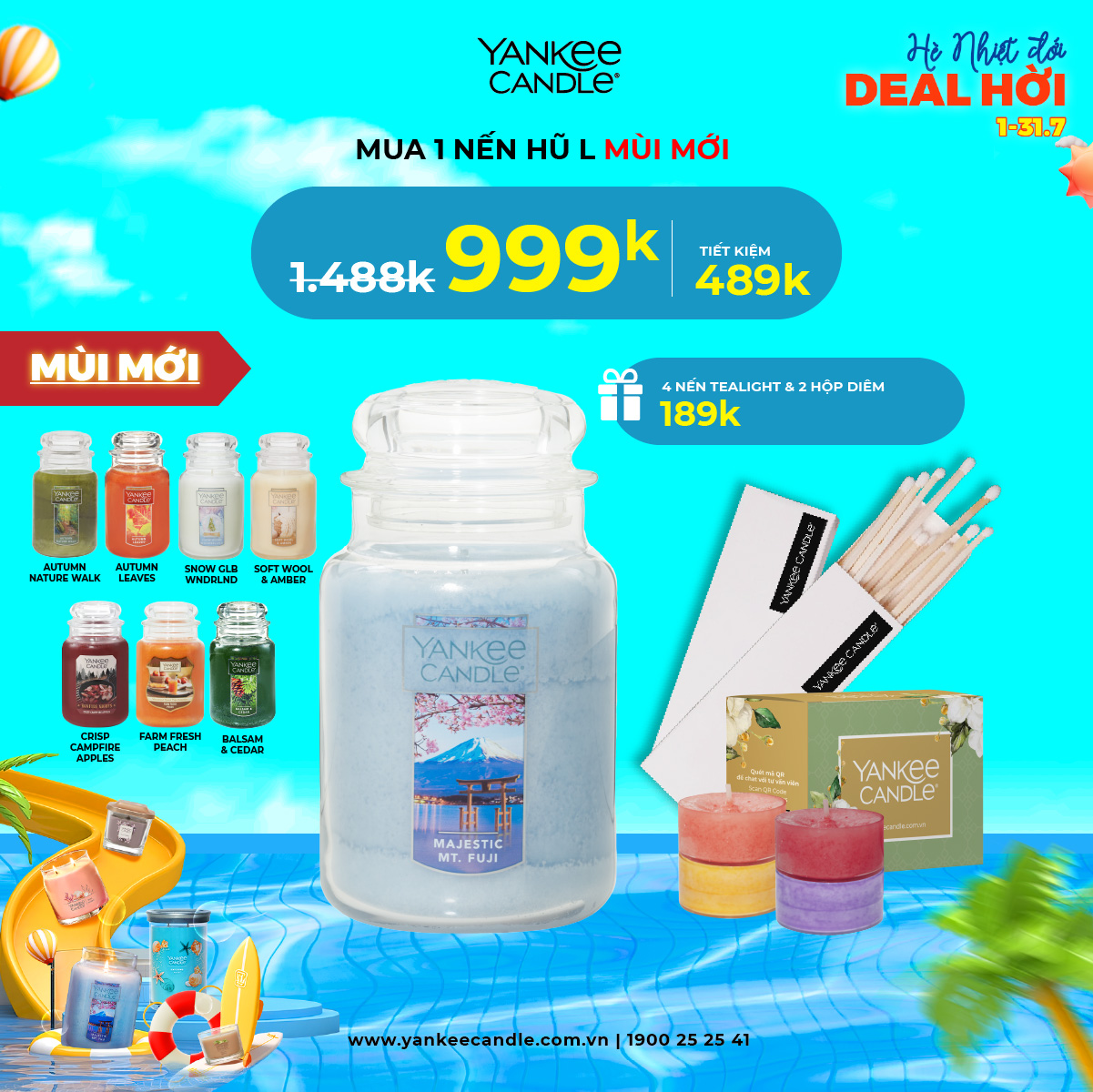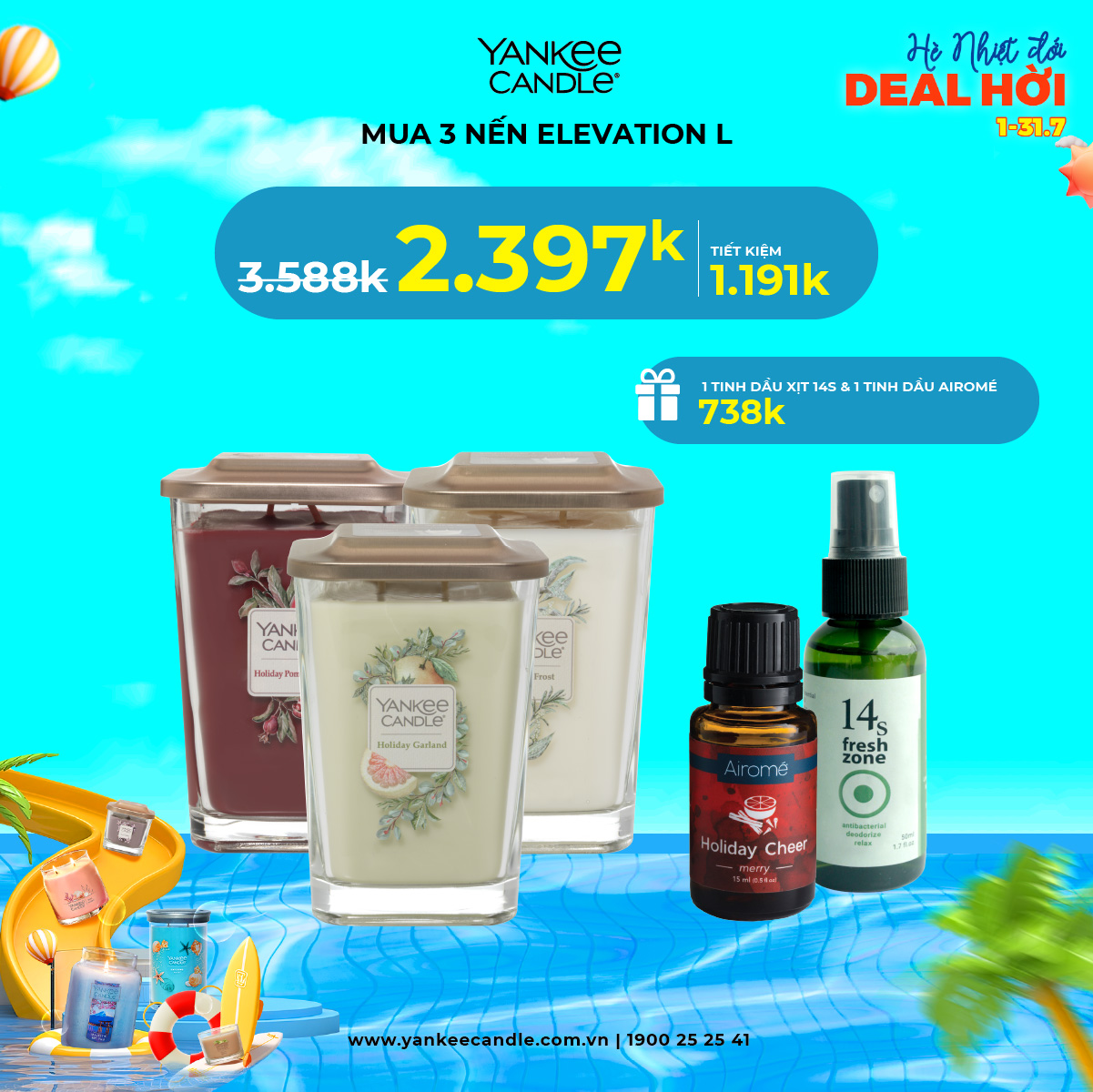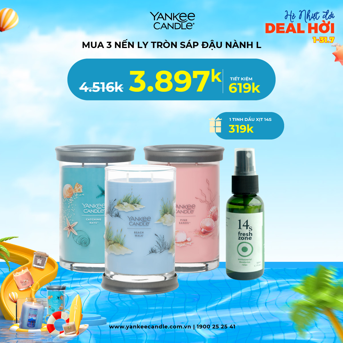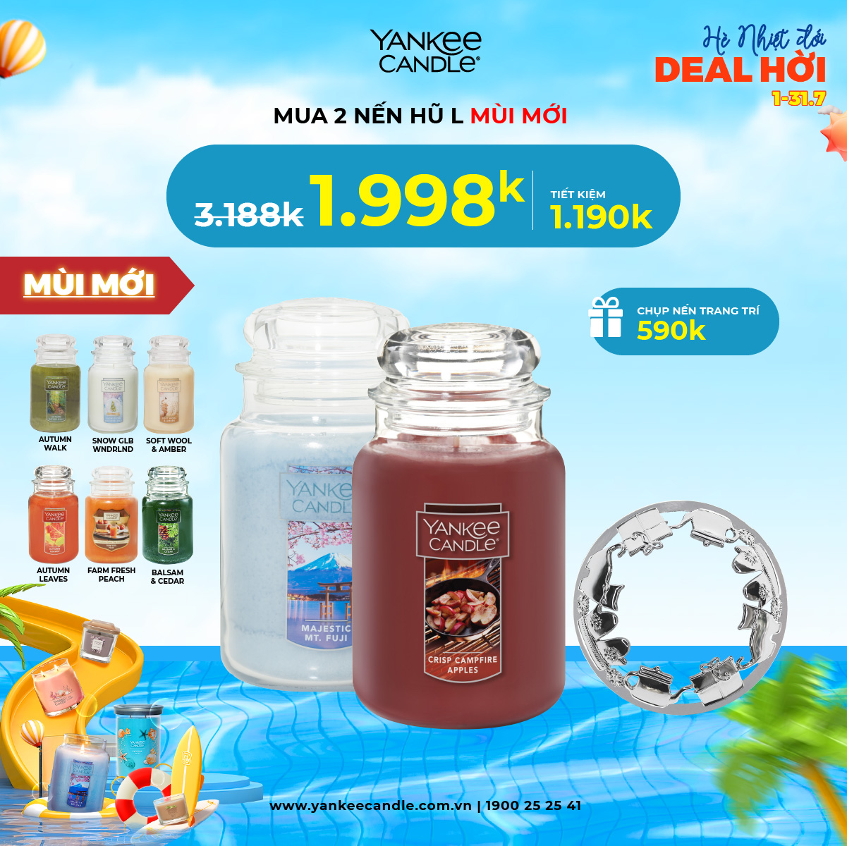 Tháng 7 này, Yankee mang tới cho bạn chương trình ưu đãi siêu chất! Loạt sản phẩm hương thơm với giá siêu hời đã sẵn sàng lên kệ. Cùng nhau thổi hương thơm tươi mát, sảng khoái vào căn phòng để mùa hè càng thêm sôi nổi bạn nha!