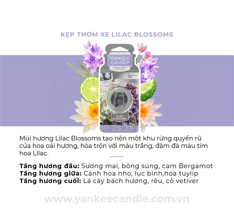 Mùi hương Lilac Blossoms tạo nên một khu rừng quyến rũ của hoa oải hương, hòa trộn với màu trắng, đậm đà màu tím hoa Lilac.