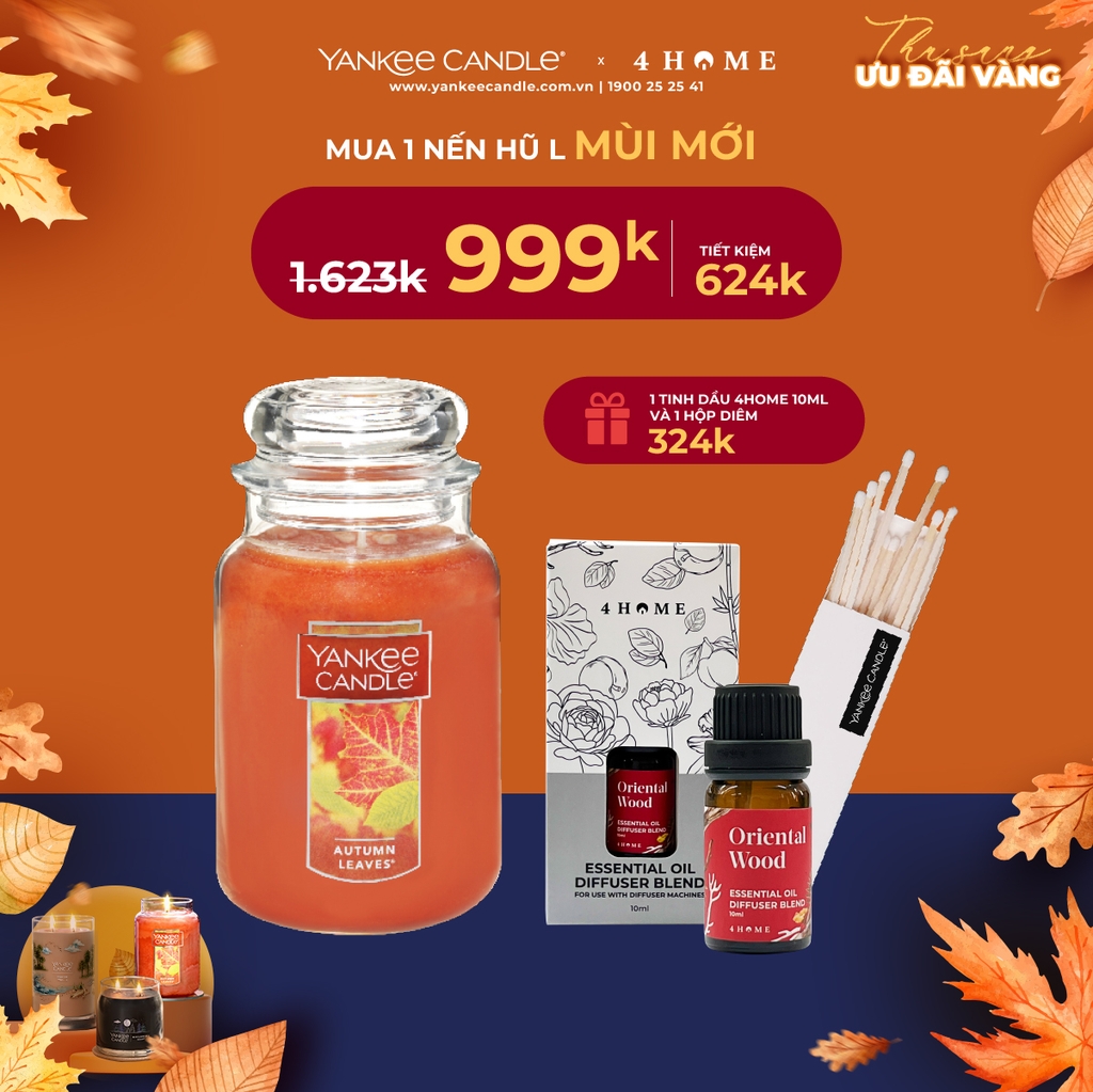 Mua nến hũ L mùi mới được tặng 1 tinh dầu 4Home 10ml và 1 hộp diêm