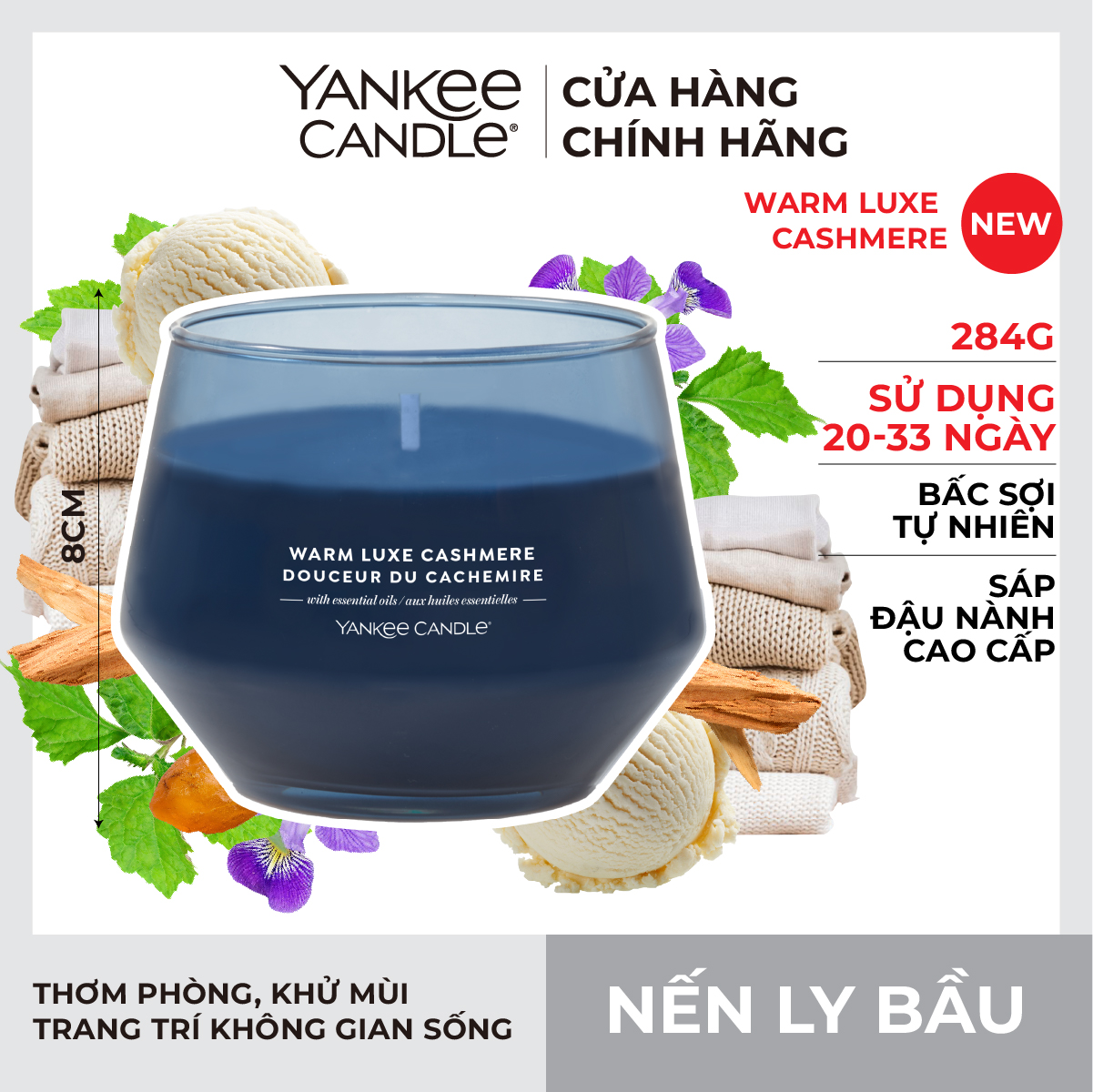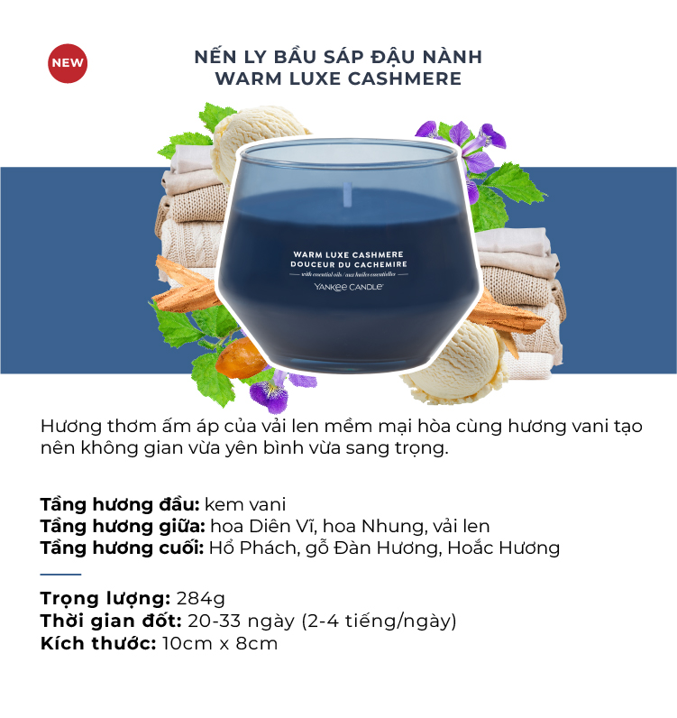 Nến ly bầu Yankee Candle mùi Warm Luxe Cashmere