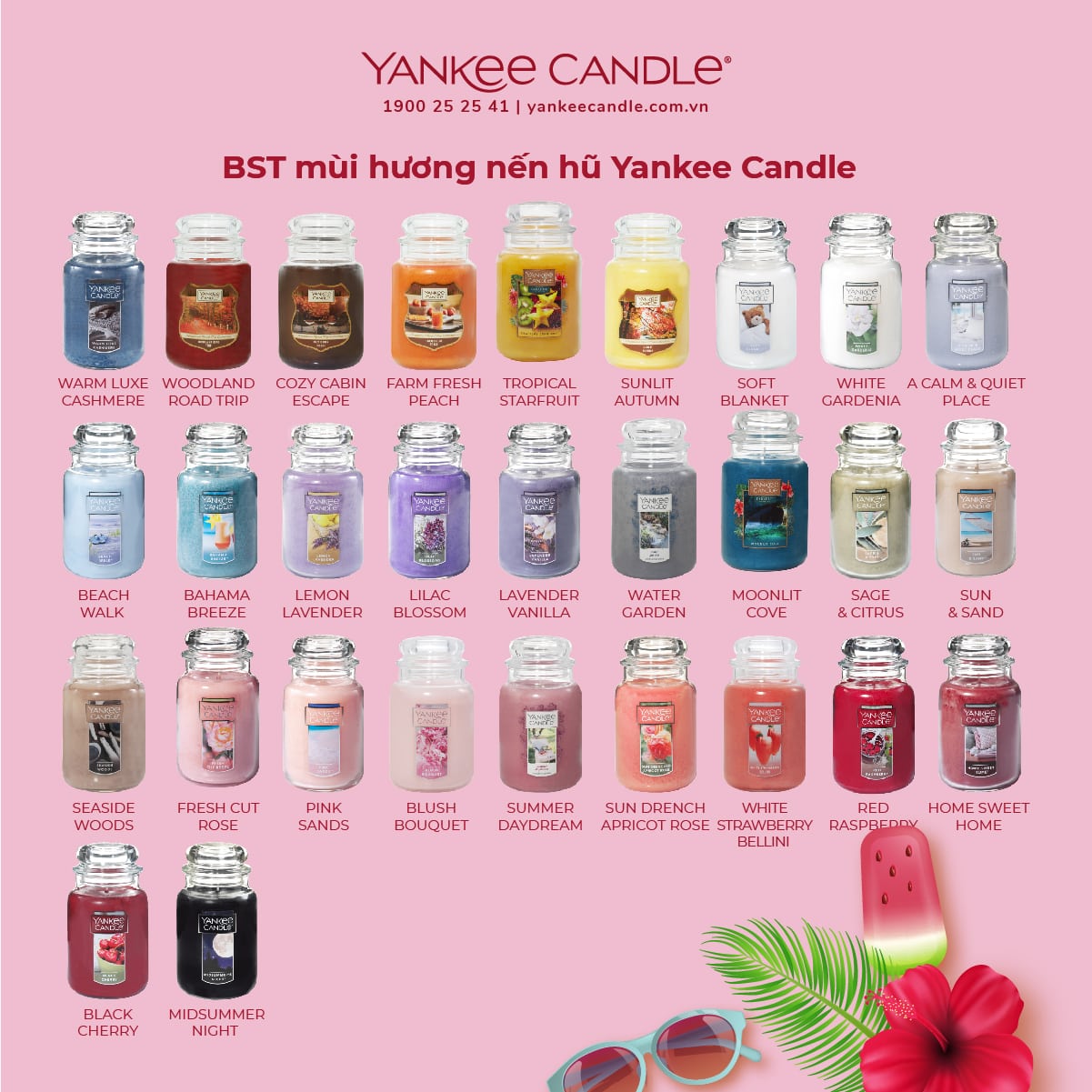 Nhưng mà bạn cứ yên tâm! BST nến hũ Yankee có rất nhiều mùi hương tươi mát, trong lành của hoa trái, cỏ cây, biển cả hay là rừng núi...Tất cả sẽ bao phủ một tấm màng hương dễ chịu lên không gian sống. Để bạn cảm thấy tinh thần thoải mái, tâm trạng trở nên vui vẻ hơn và đón nhận niềm vui trong mùa hè rực rỡ.