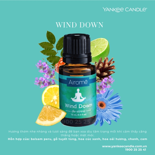 WIND DOWN: Hương thơm nhẹ nhàng và tươi sáng để bạn xoa dịu tâm trạng mỗi khi cảm thấy căng thẳng hoặc mệt mỏi.