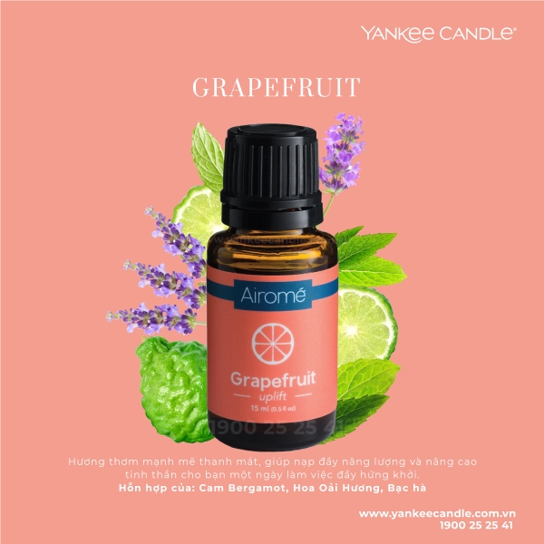 GRAPEFRUIT: Hương thơm mạnh mẽ thanh mát, giúp nạp đầy năng lượng và nâng cao tinh thần cho bạn một ngày làm việc đầy hứng khởi.