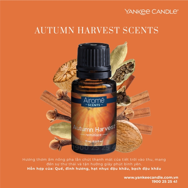 AUTUMN HARVEST SCENTS: Hương thơm ấm nồng pha lẫn chút thanh mát của tiết trời vào thu, mang đến sự thư thái và tận hưởng giây phút bình yên.