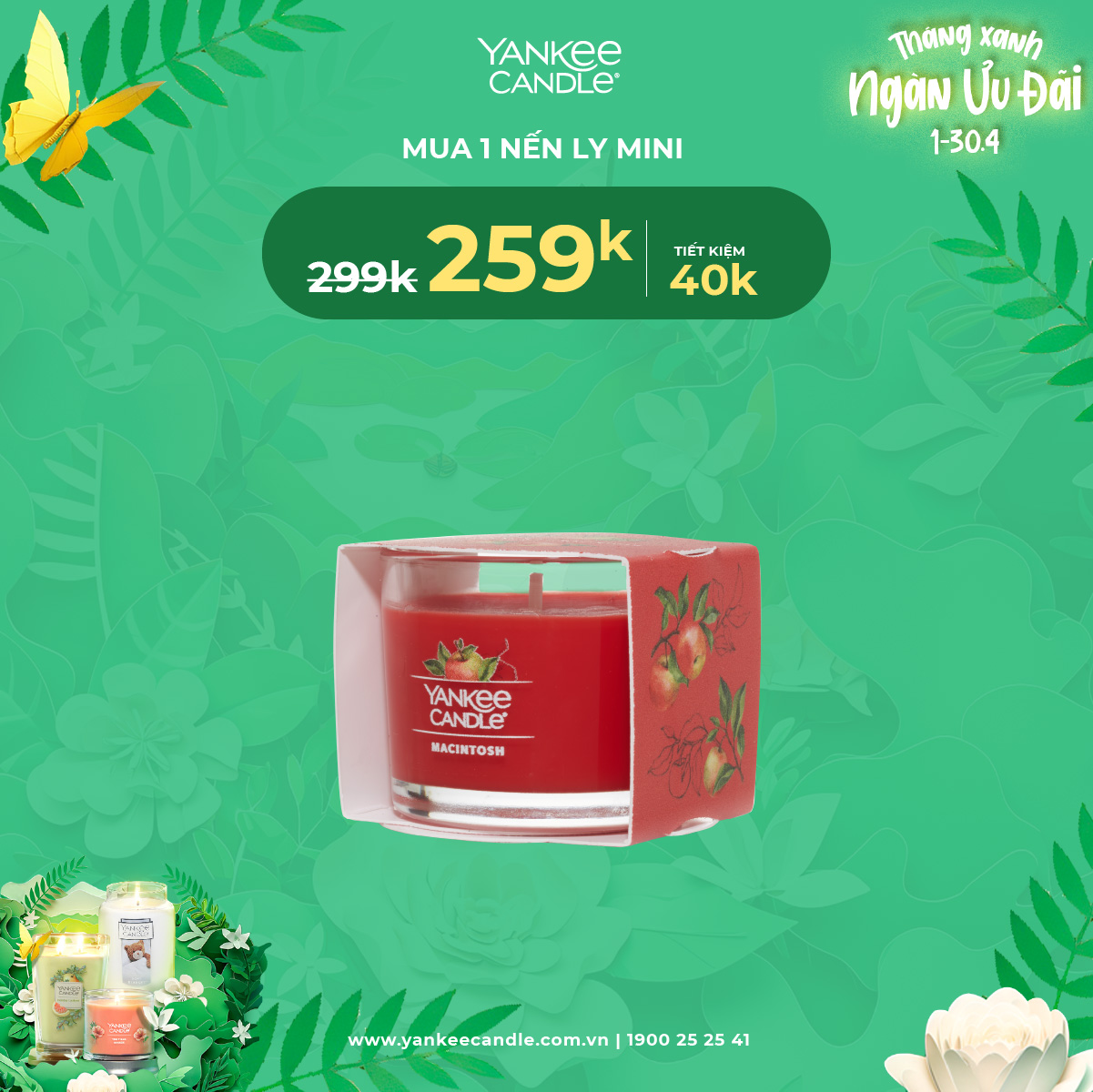 Chương trình ưu đãi áp dụng 1-30/4 cho khách mua hàng tại showroom và fanpage Yankee Candle.