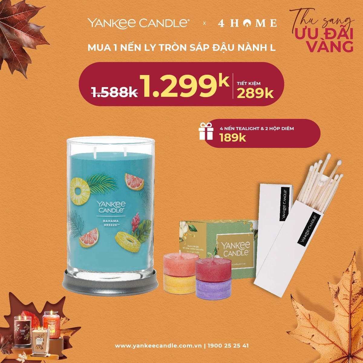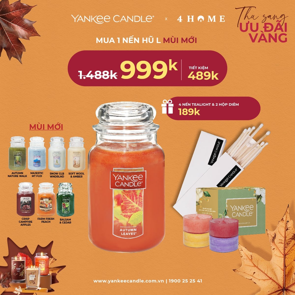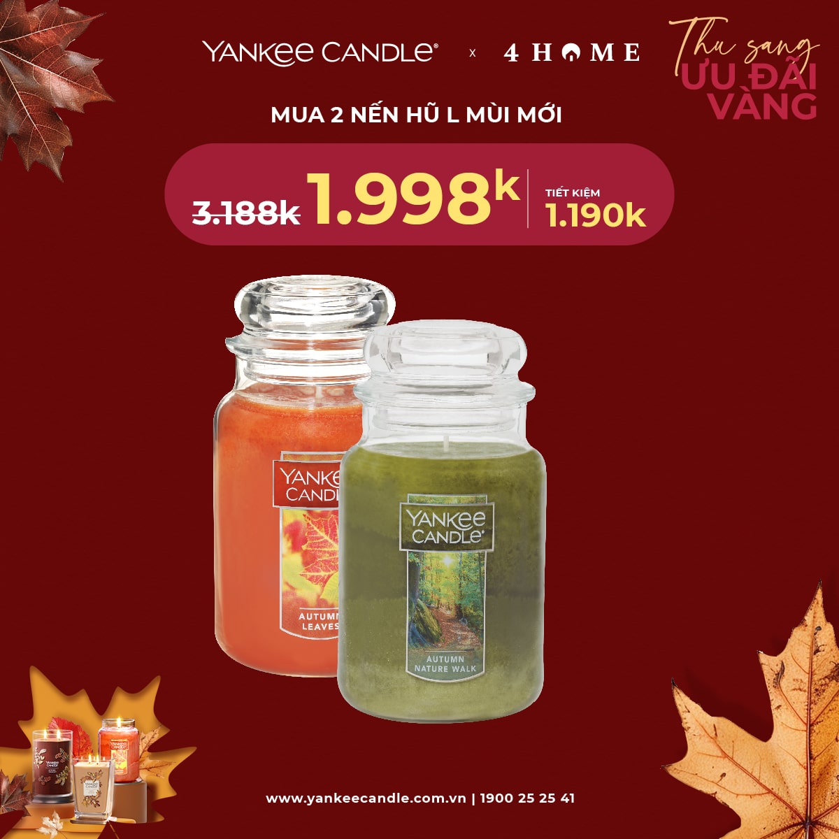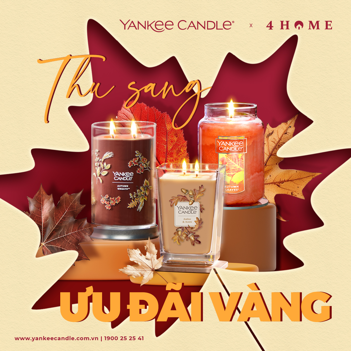 Mùa thu đã đến, không khí dịu mát là thời điểm lý tưởng để thắp lên những ngọn nến thơm, mang hương sắc ấm áp vào không gian sống. Yankee Candle dành tặng bạn - những người yêu thích hương thơm ưu đãi vàng. Nhanh tay săn deal, cùng tận hưởng hương thơm trong mùa lãng mạn năm nay bạn nhé!