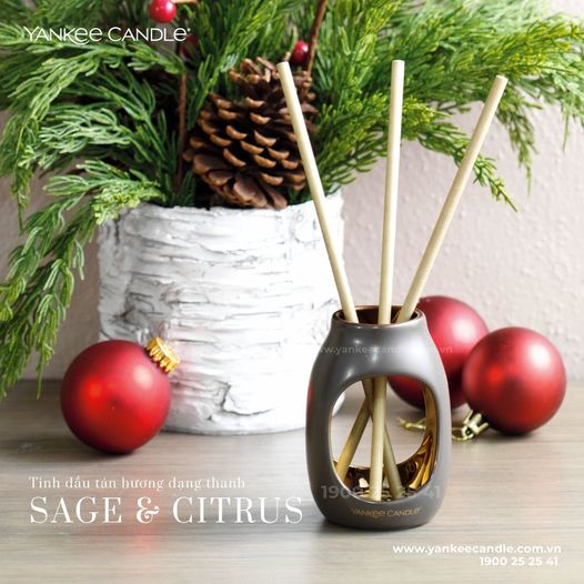 Tinh dầu tán hương Sage & Citrus là sự pha trộn của thảo dược quý, hương hoa, chanh và hương gỗ trầm ấm. Tạo nên hương thơm sang trọng và cuốn hút, rất phù hợp trong không khí se lạnh những ngày cuối năm như thế này.