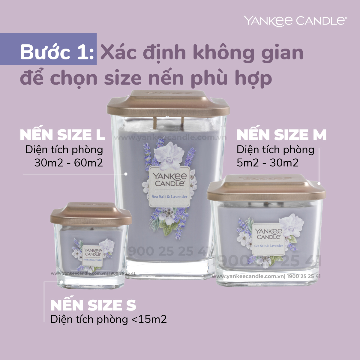 Nến Yankee có 3 size phổ biến được thiết kế cho từng không gian khác nhau. Tùy theo diện tích căn phòng của mình mà bạn có thể chọn size nến tương thích để tận hưởng tối đa hương thơm.
