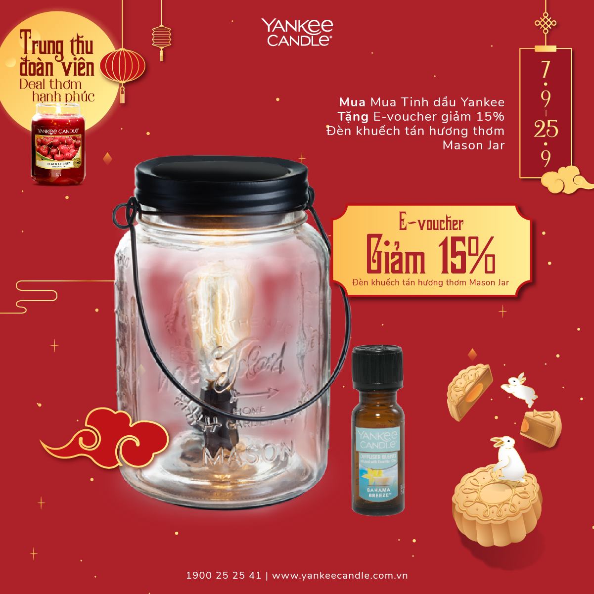 Mua tinh dầu Yankee Candle tặng E-voucher giảm 15% Đèn khuếch tán tinh dầu/Đèn khuếch tán hương thơm Mason Jar