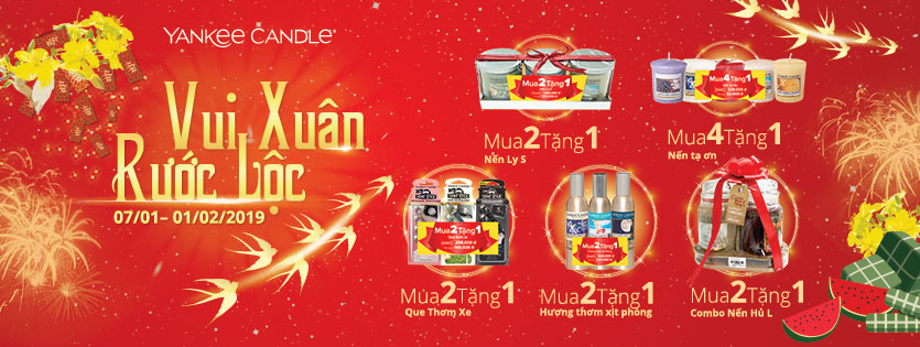 Tết đến xuân về là khoảng thời gian để quý khách hàng tân trang lại nhà cửa, làm mới mọi thứ để đón chào những điều tốt đẹp, mới mẻ cho một năm sắp tới. Để phục vụ nhu cầu mua sắm cho những ngày Tết đến, YANKEE CANDLE sẽ diễn ra một chương trình khuyến mãi cực kì hấp dẫn “ VUI XUÂN RƯỚC LỘC”. Cho quý khách hàng có được những trải nghiệm thú vị, cho ngày vui xuân thêm hạnh phúc.