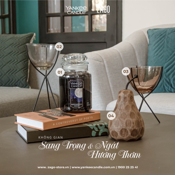 Sự kết hợp giữa Yankee & Zago sẽ biến đổi không gian phòng khách nhà bạn trở nên thu hút và ấn tượng hơn với mọi vị khách đến thăm nhà bằng hương thơm sang trọng và các món phụ kiện trang trí tinh tế.